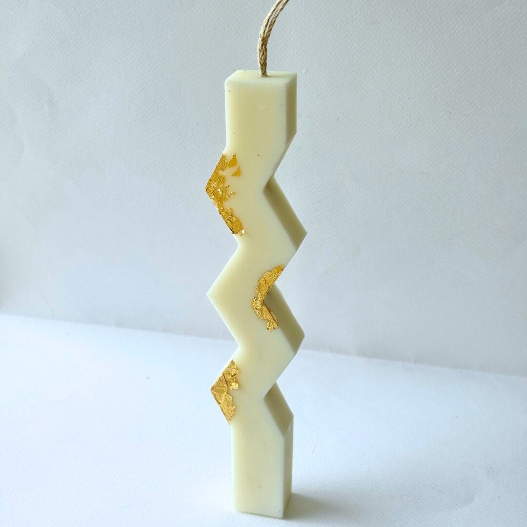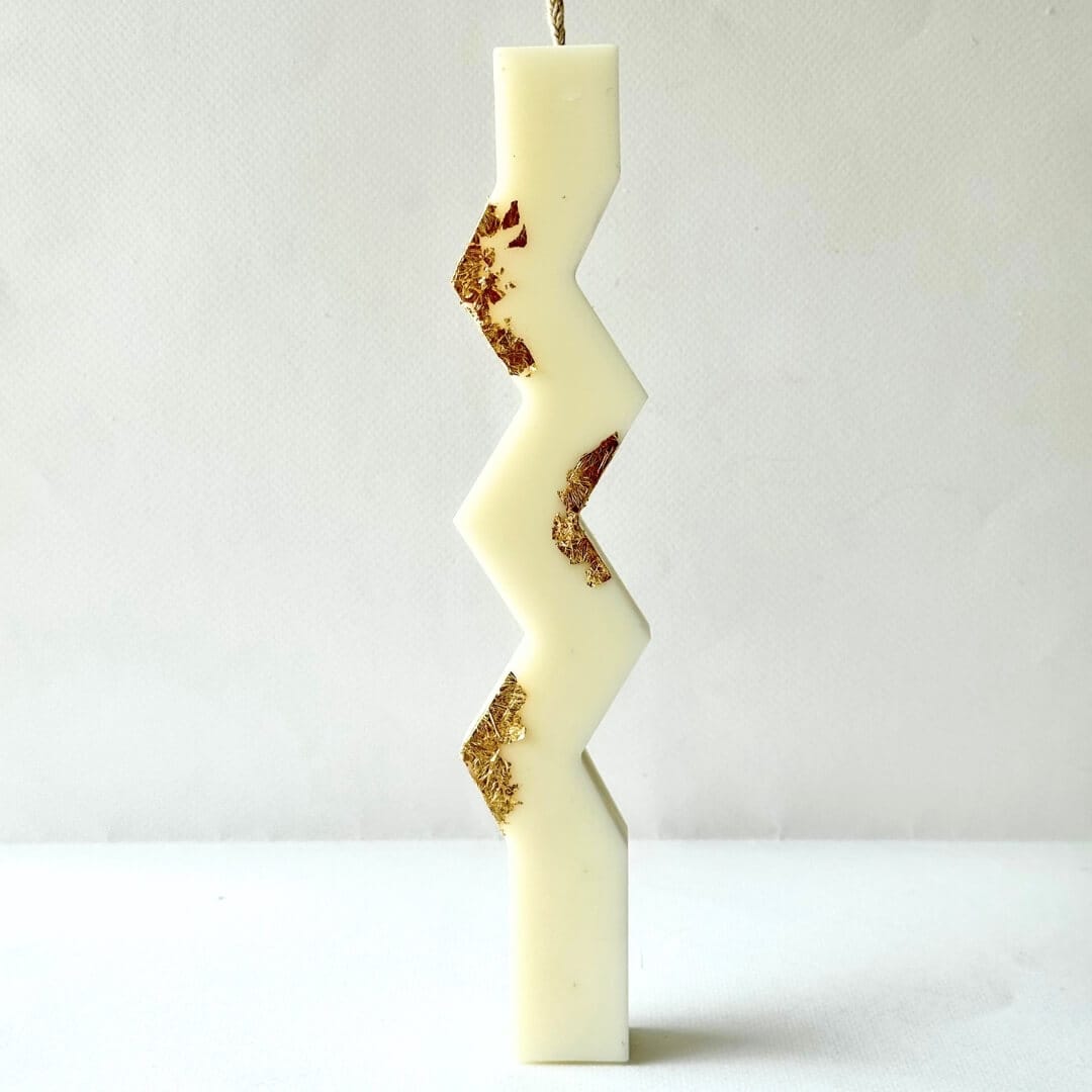 Ανακαλύψτε τη χειροποίητη πασχαλινή λαμπάδα με φύλλα χρυσού σε σχέδιο ζιγκ-ζαγκ, έναν συνδυασμό που αποπνέει πολυτέλεια και κομψότητα. Σχεδιασμένη και κατασκευασμένη από εμάς με προσοχή στη λεπτομέρεια. Aυτή η λαμπάδα ξεχωρίζει για την ποιότητά της και την ιδιαίτερη αισθητική της.