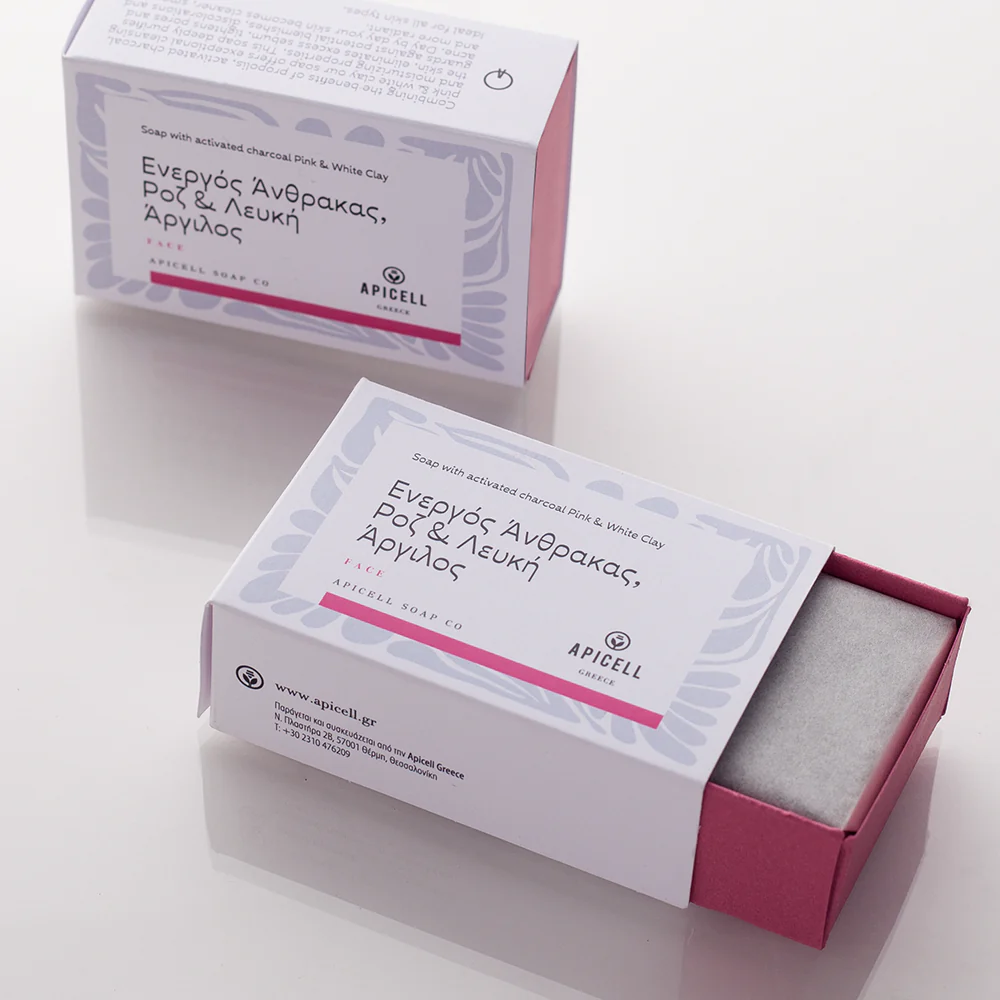 Σαπούνι με Ενεργό Άνθρακα, Ροζ & Λευκή Άργιλο