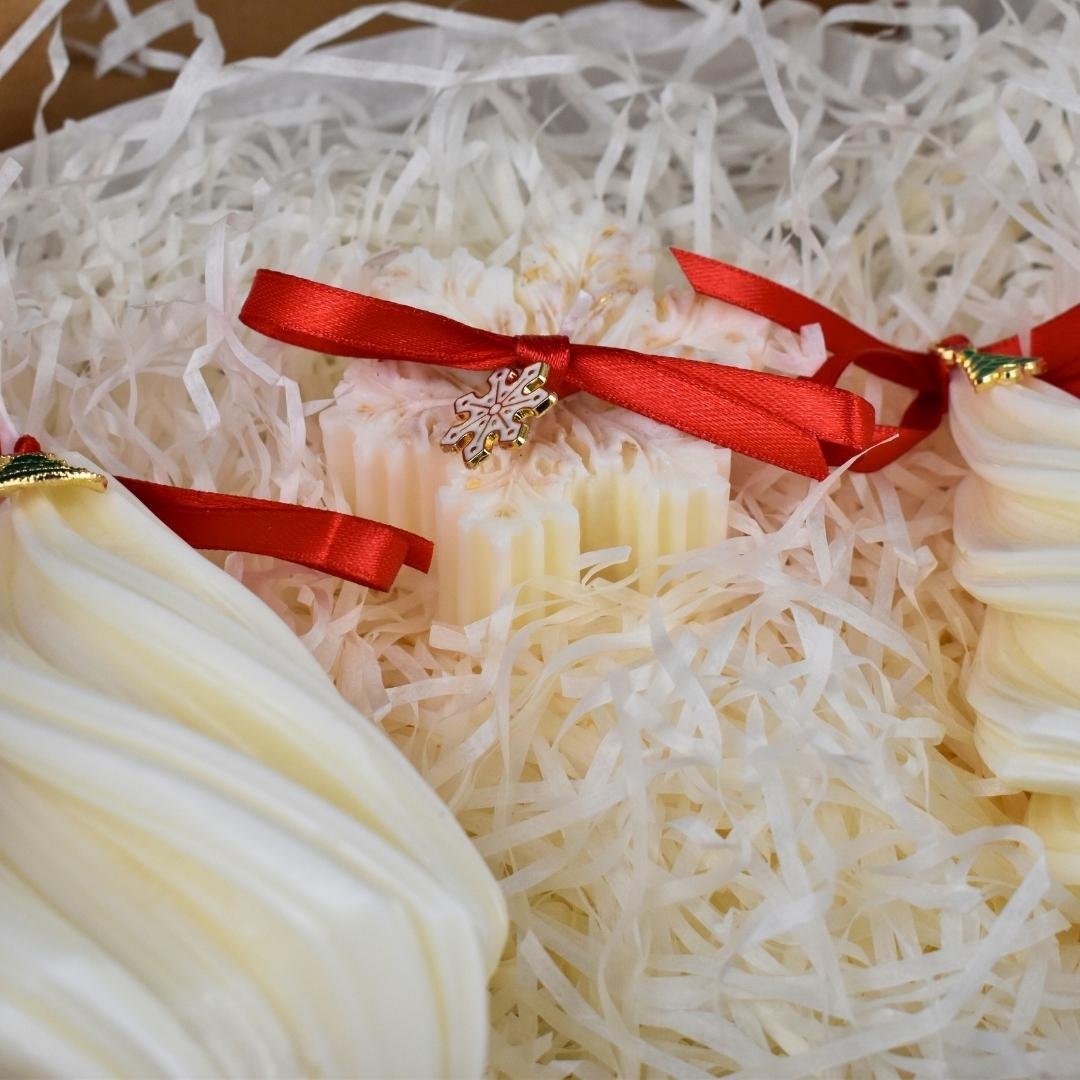 Χριστουγεννιάτικο Gift Box με διακοσμητικό κερί σόγιας σε σχήμα Swirl Χριστουγεννιάτικο Δέντρο σε δύο μεγέθη (Large και Small) από 100% φυτικό κερί. Δώρο με κάθε παραγγελία μια Χιονονιφάδα.