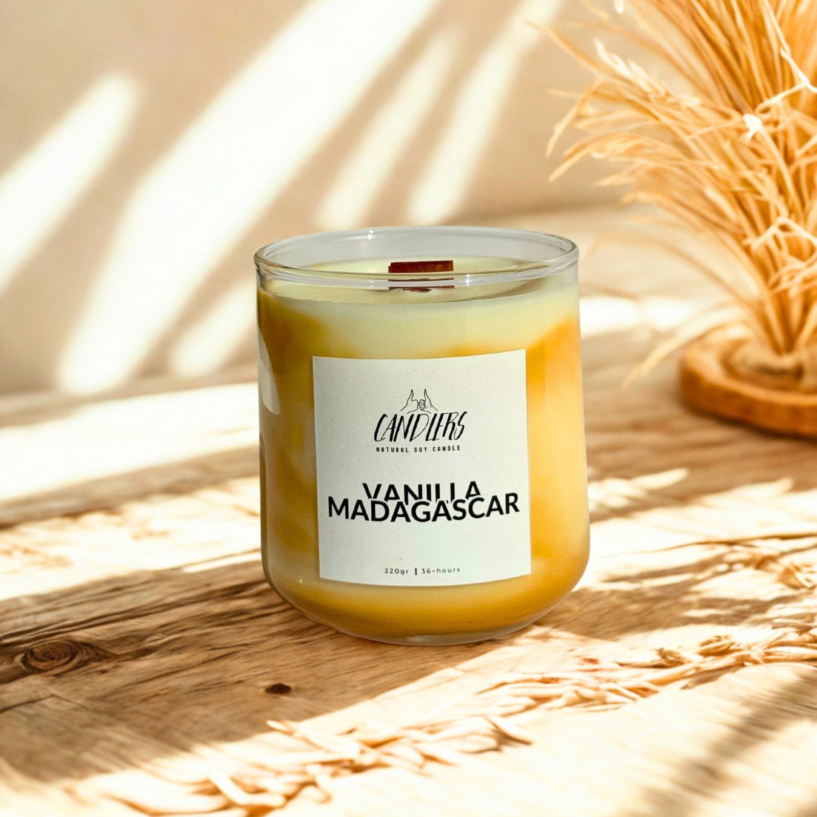 Madagascar Vanilla Κερί Σόγιας. Η βανίλια Μαδαγασκάρης είναι γνωστή για την πλούσια, γλυκιά και εξαιρετικά αρωματική της νότα. Το κερί αυτό είναι ιδανικό για τη δημιουργία μιας χαλαρωτικής ατμόσφαιρας σε κάθε χώρο, όπως το σαλόνι, το υπνοδωμάτιο ή το μπάνιο. Είναι επίσης μια υπέροχη επιλογή για τη δημιουργία ρομαντικής ατμόσφαιρας σε ειδικές περιστάσεις.